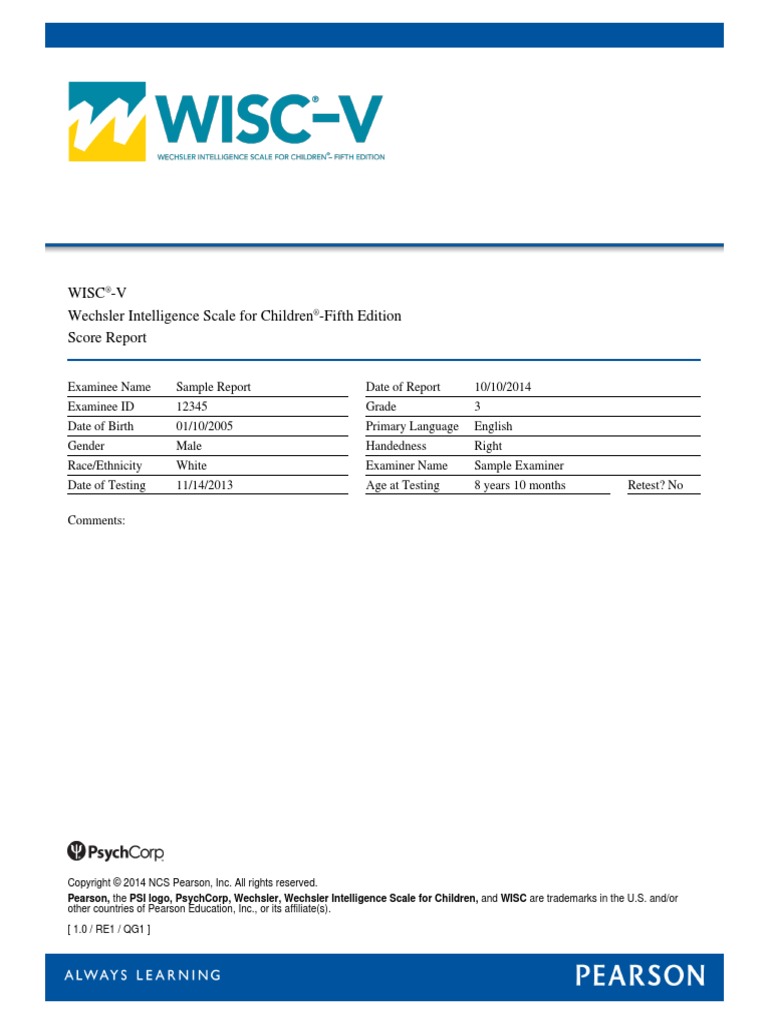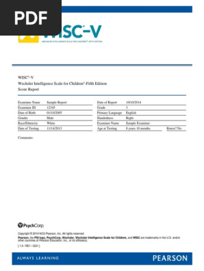 Wisc V Score Report Pdf Wechsler Adult Intelligence Scale Intelligence