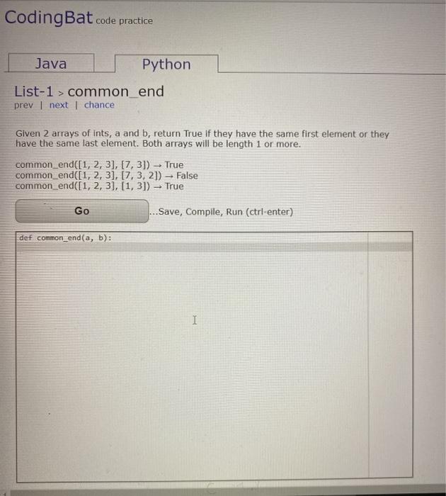 Solved Codingbat Code Practice Java Python List 1 Common Chegg Com